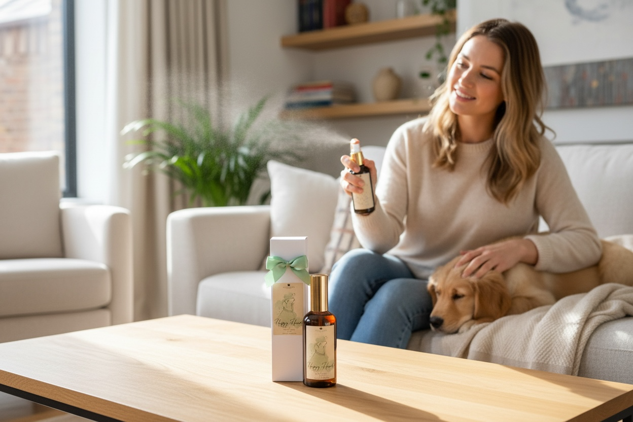 Refresh your home with our Happy Hound Pet Safe Room Spray, a beautifully balanced, dog friendly home fragrance created for pet-conscious households.